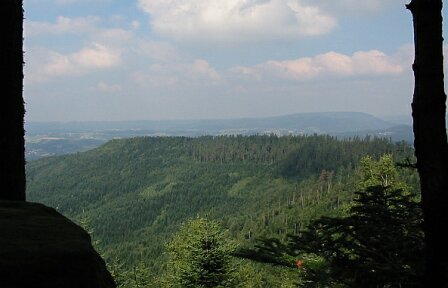 Vue depuis la roche des Corbeaux, la forme aplatie et allongée du massif de la Bure est évidente. Elle fut sans doute l'une des raisons du choix de ce plateau pour implanter le camp. | ||