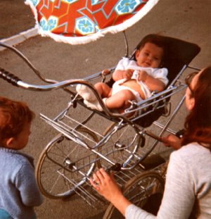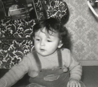 Cathy a un an de moins, elle tient son petit frère Nicolas.